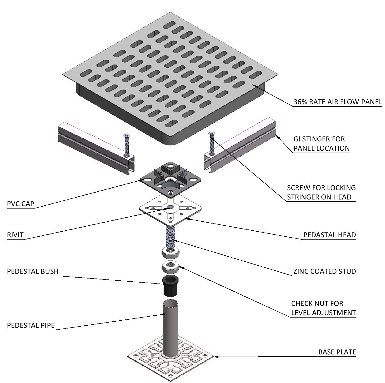 Air Flow Panels, also known as perforated or ventilated panels, are specially designed raised flooring panels that facilitate controlled airflow within an underfloor air distribution (UFAD) system. These panels are engineered with precision-cut perforations or grill inserts, allowing conditioned air to flow from the underfloor plenum into the occupied space. They are crucial in environments that require efficient cooling, temperature regulation, and optimal airflow, such as data centers, server rooms, and critical control areas.